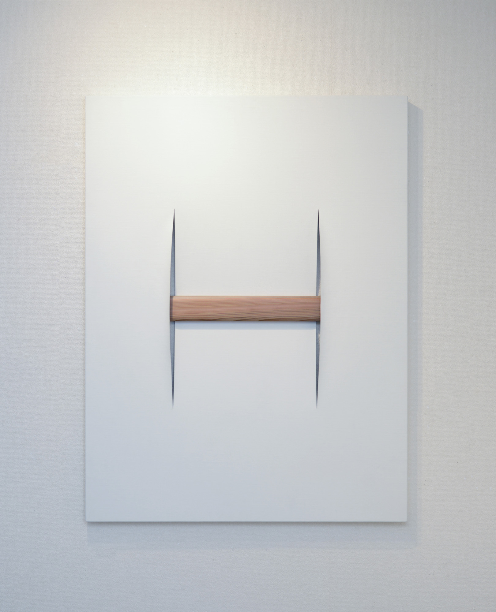 アルゼンチンで生まれたある美術家は、閉鎖された領域を越え無限に拡がることを期待して、一色に染めたキャンバスにナイフで切れ目を入れた。