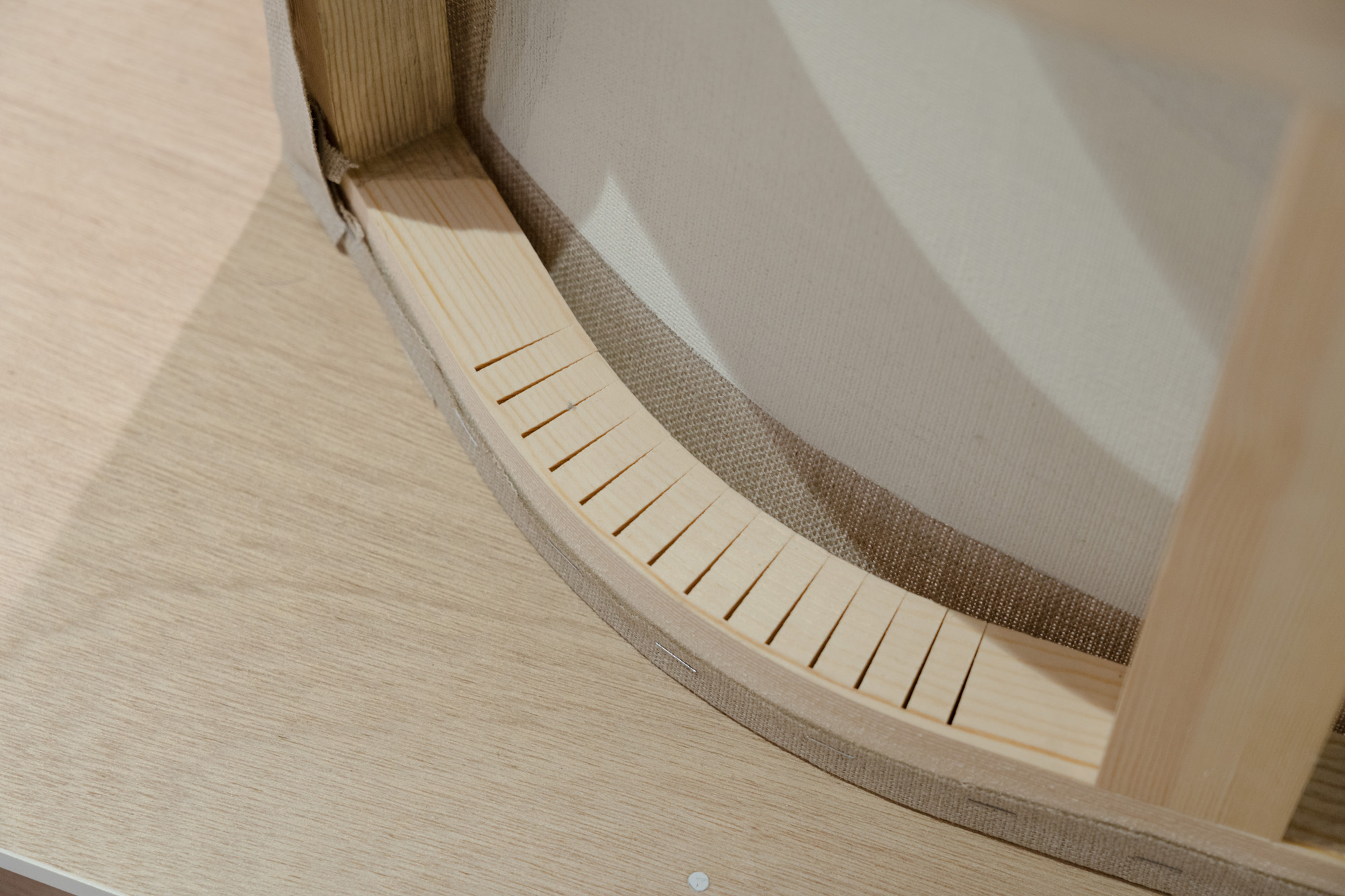 少し黄色がかった白で塗られた、目が細かな麻布の画布を、真鍮の釘で間隔が揃うように張ったそれは、言葉では言い表せないものだった。