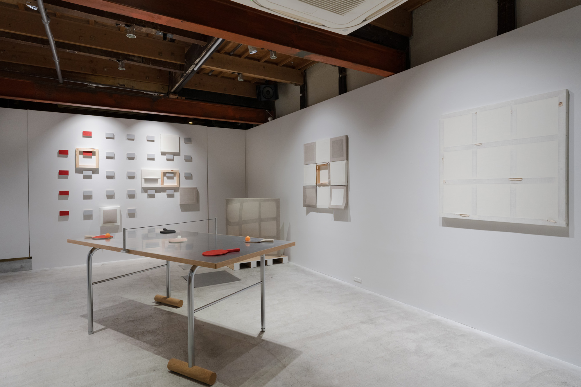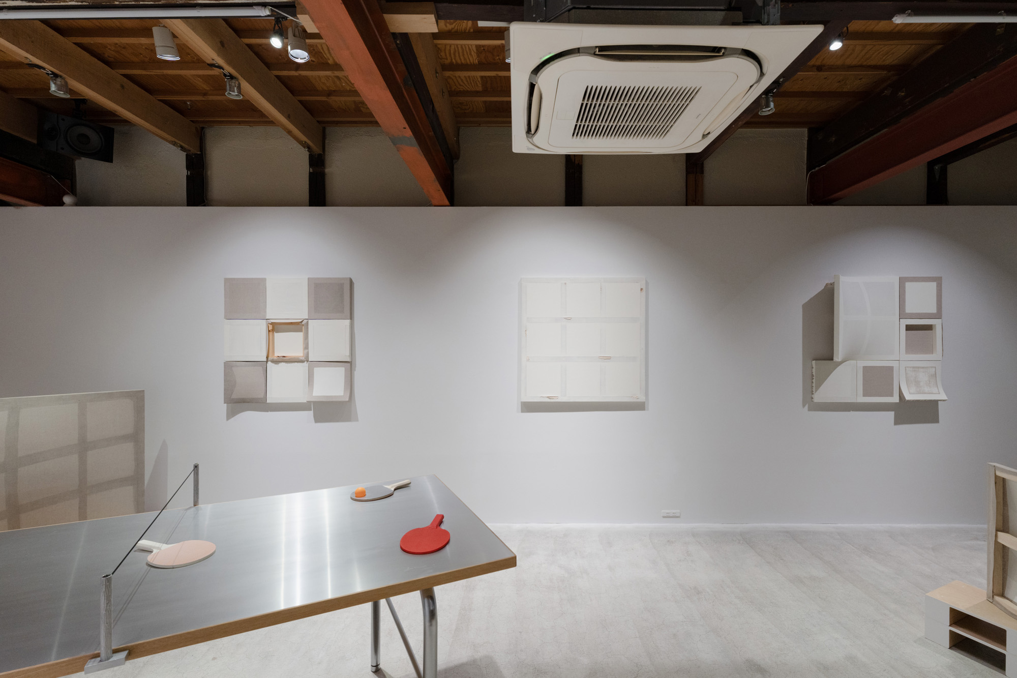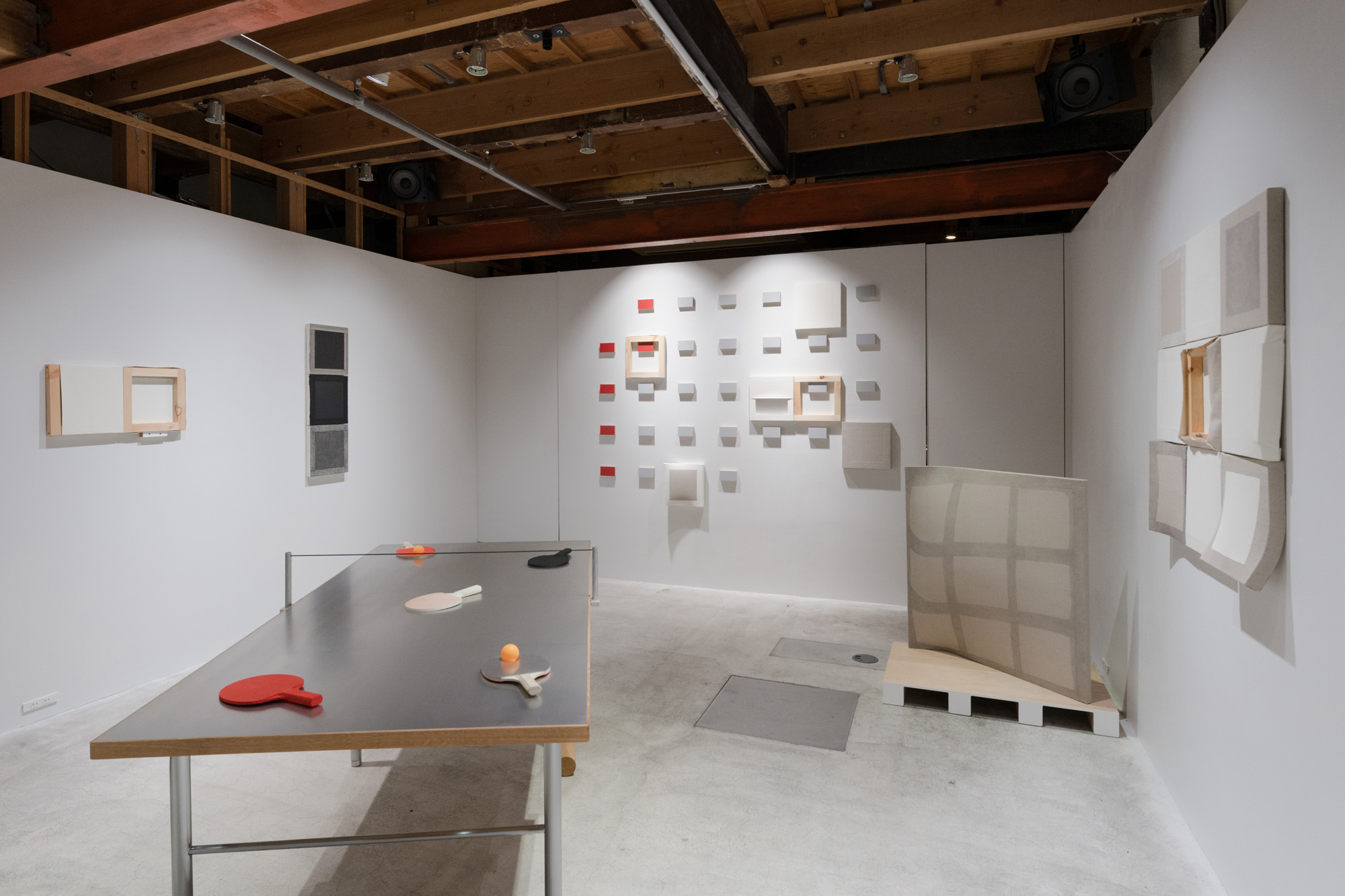 什器、展示台、卓球台、壁面の突起物(ドッコ)は Monoya によるデザイン・制作