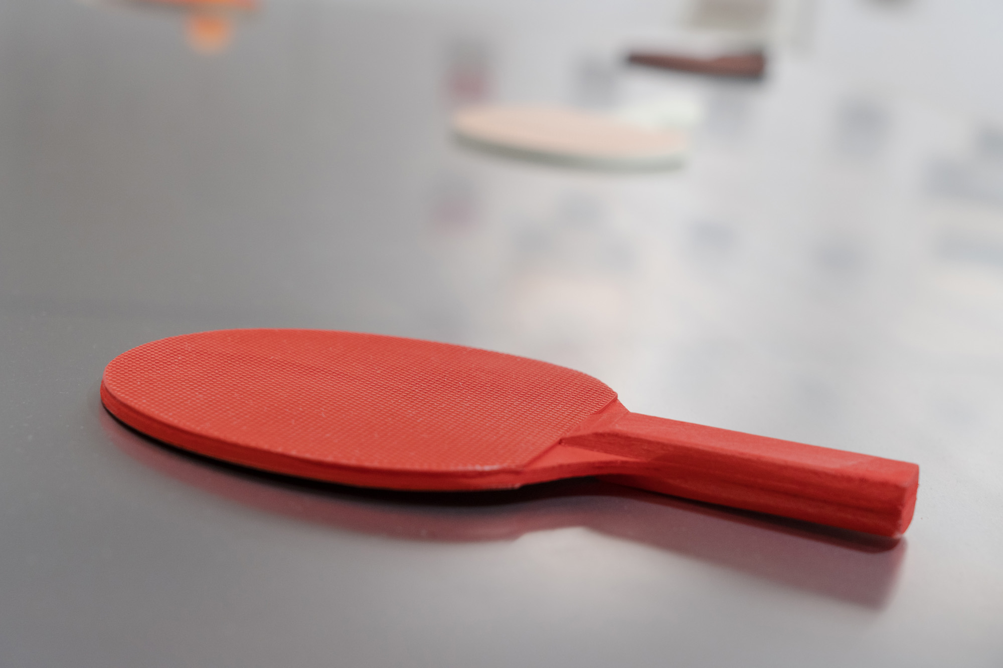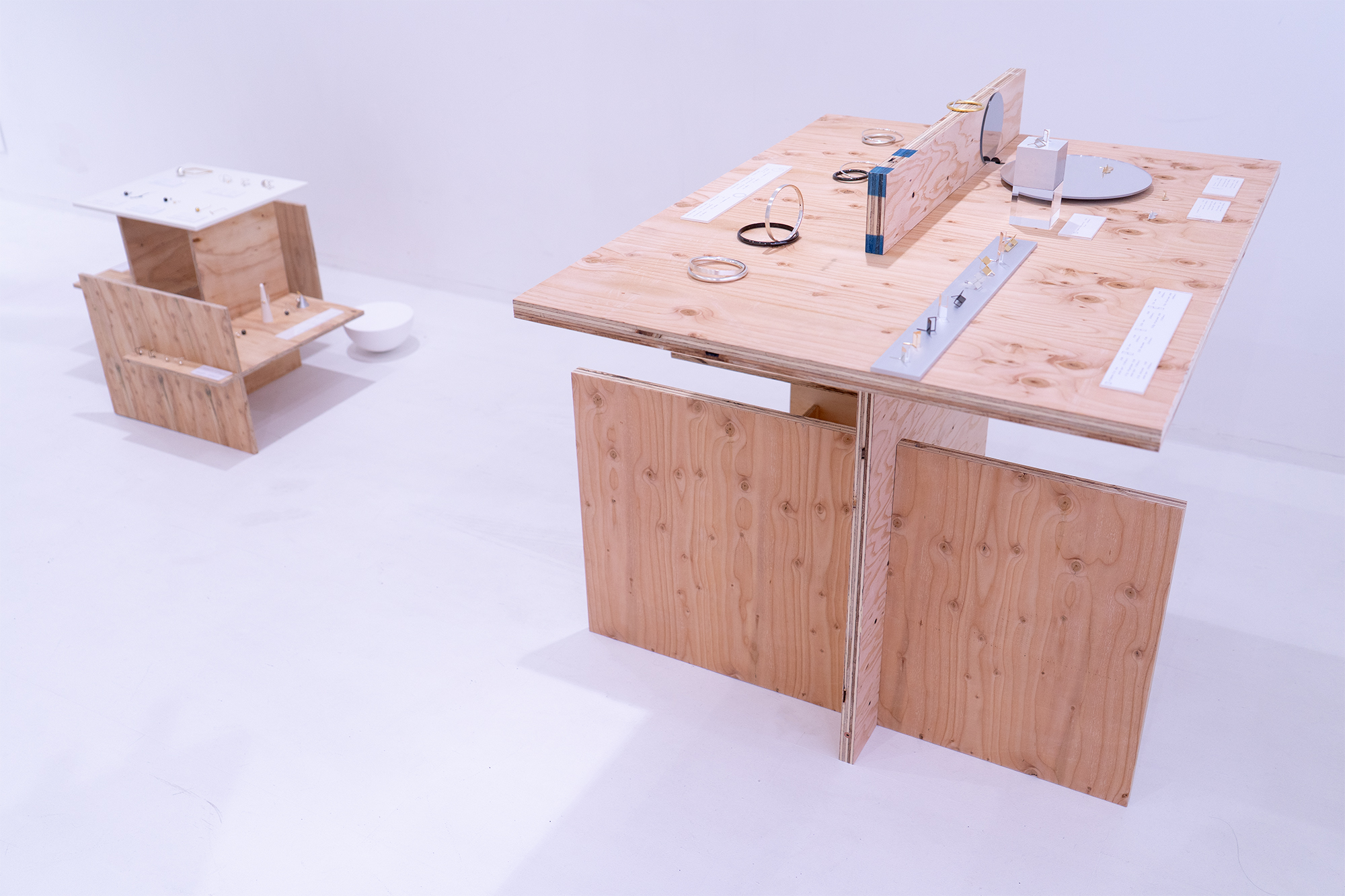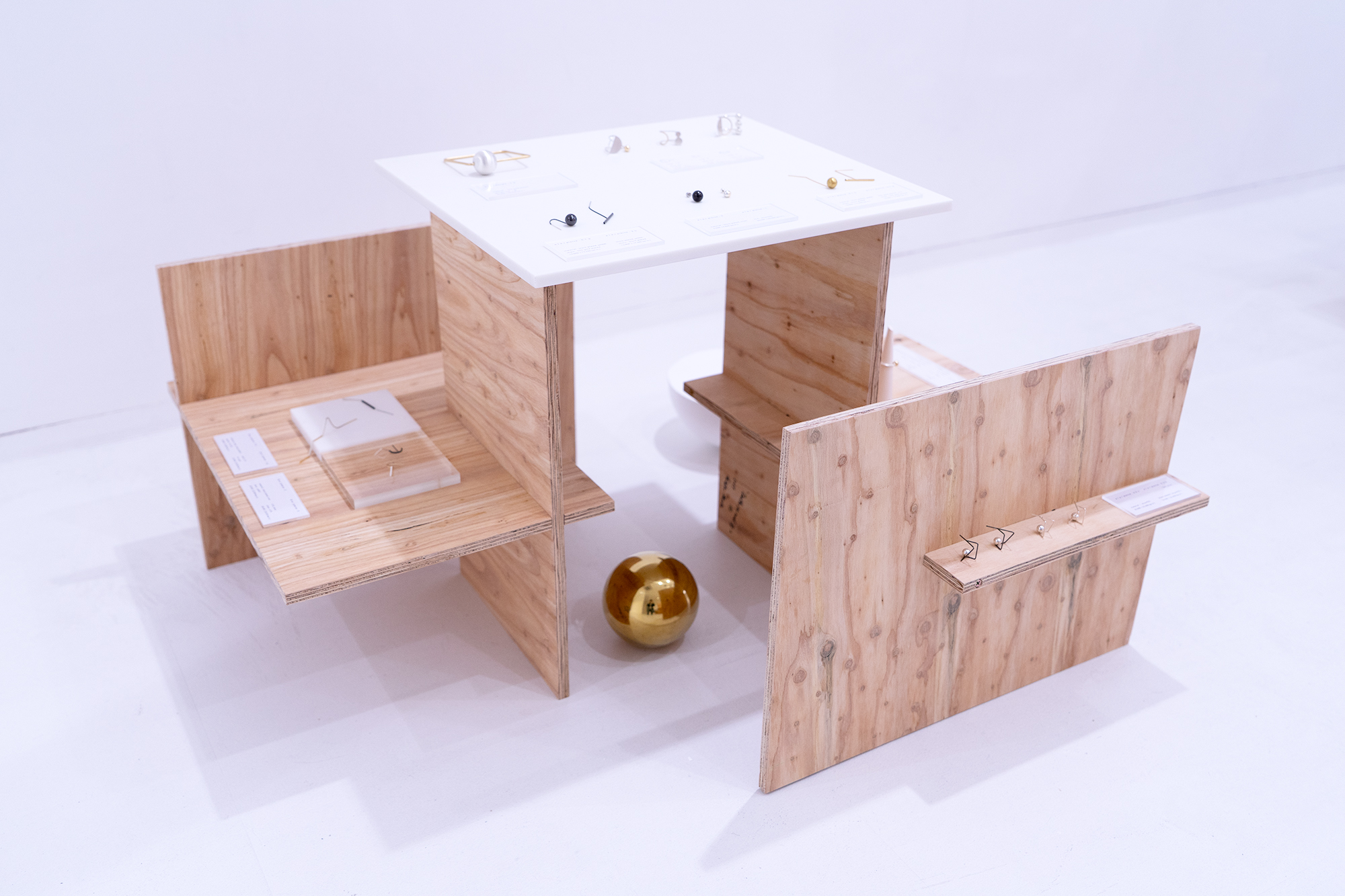 什器、展示台、卓球台、壁面の突起物(ドッコ)は Monoya によるデザイン・制作
