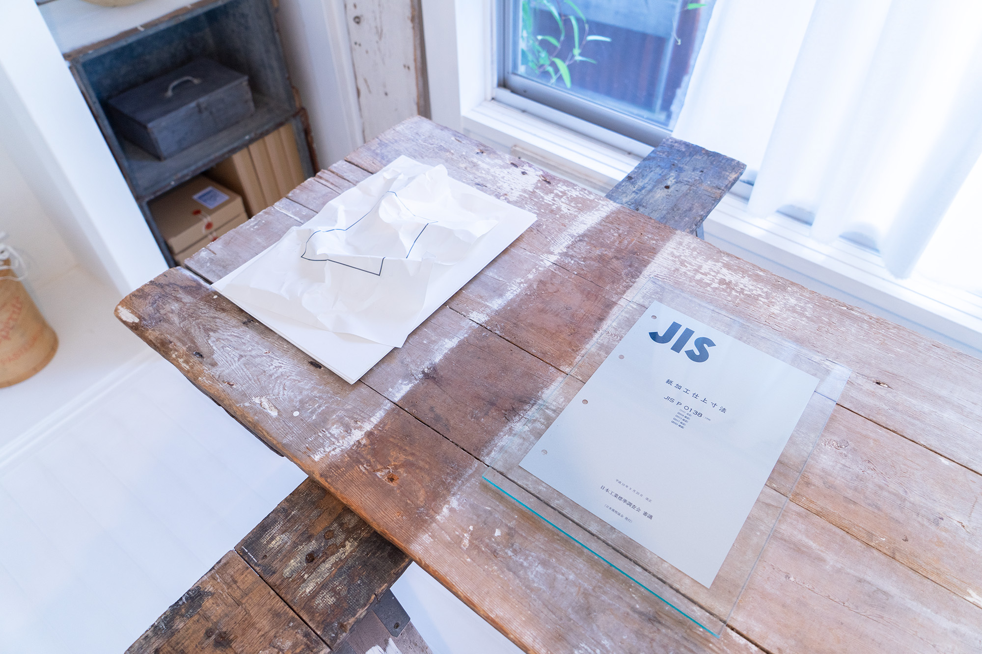 JISとは日本産業規格の略称であり、本展は紙の加工寸法(A4サイズ、B5サイズetc)に着目した展示である。