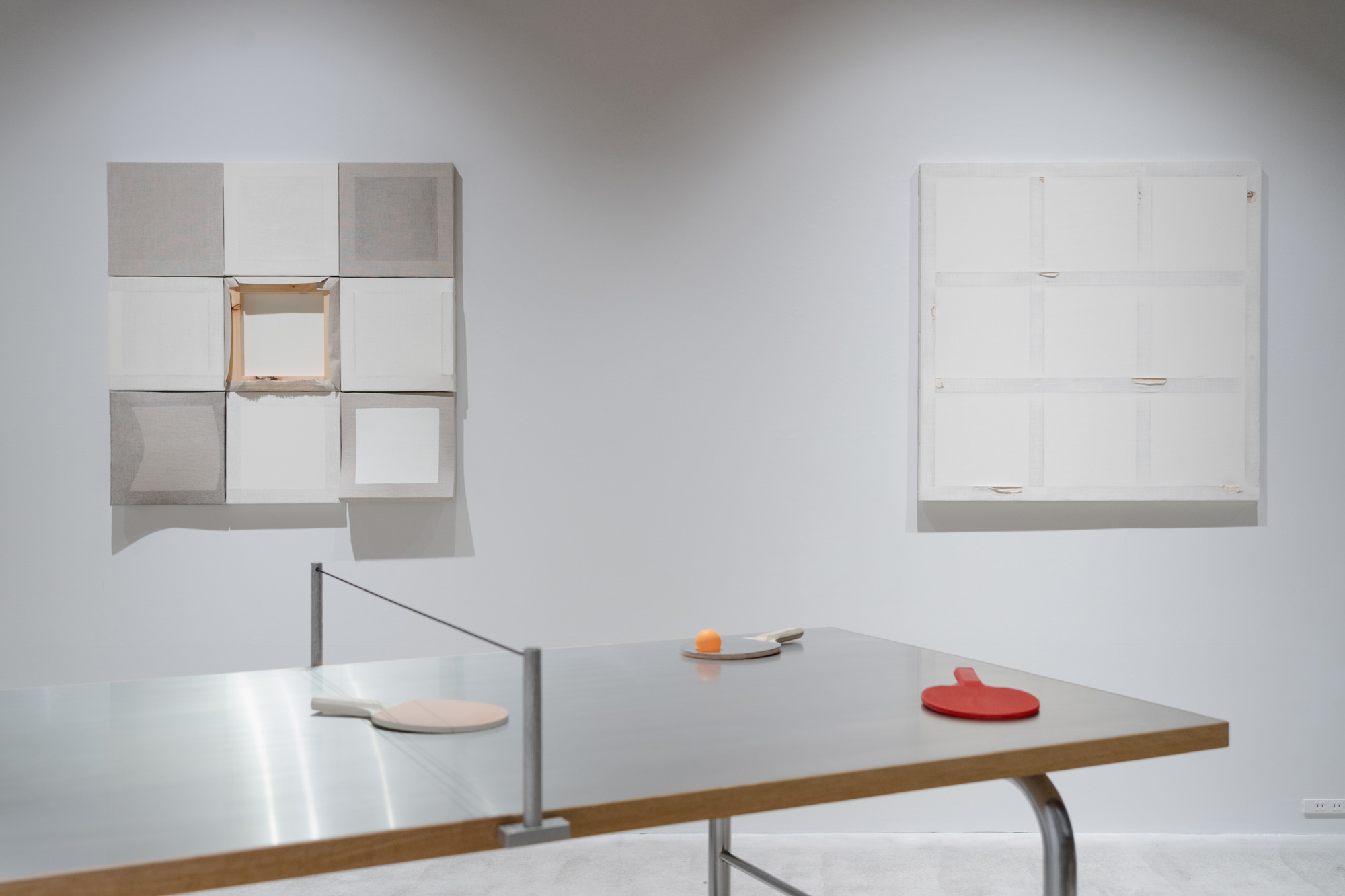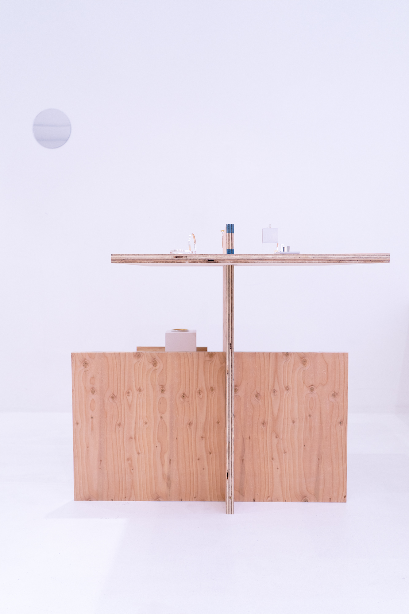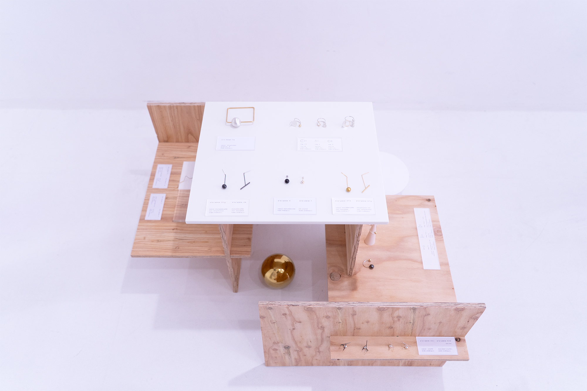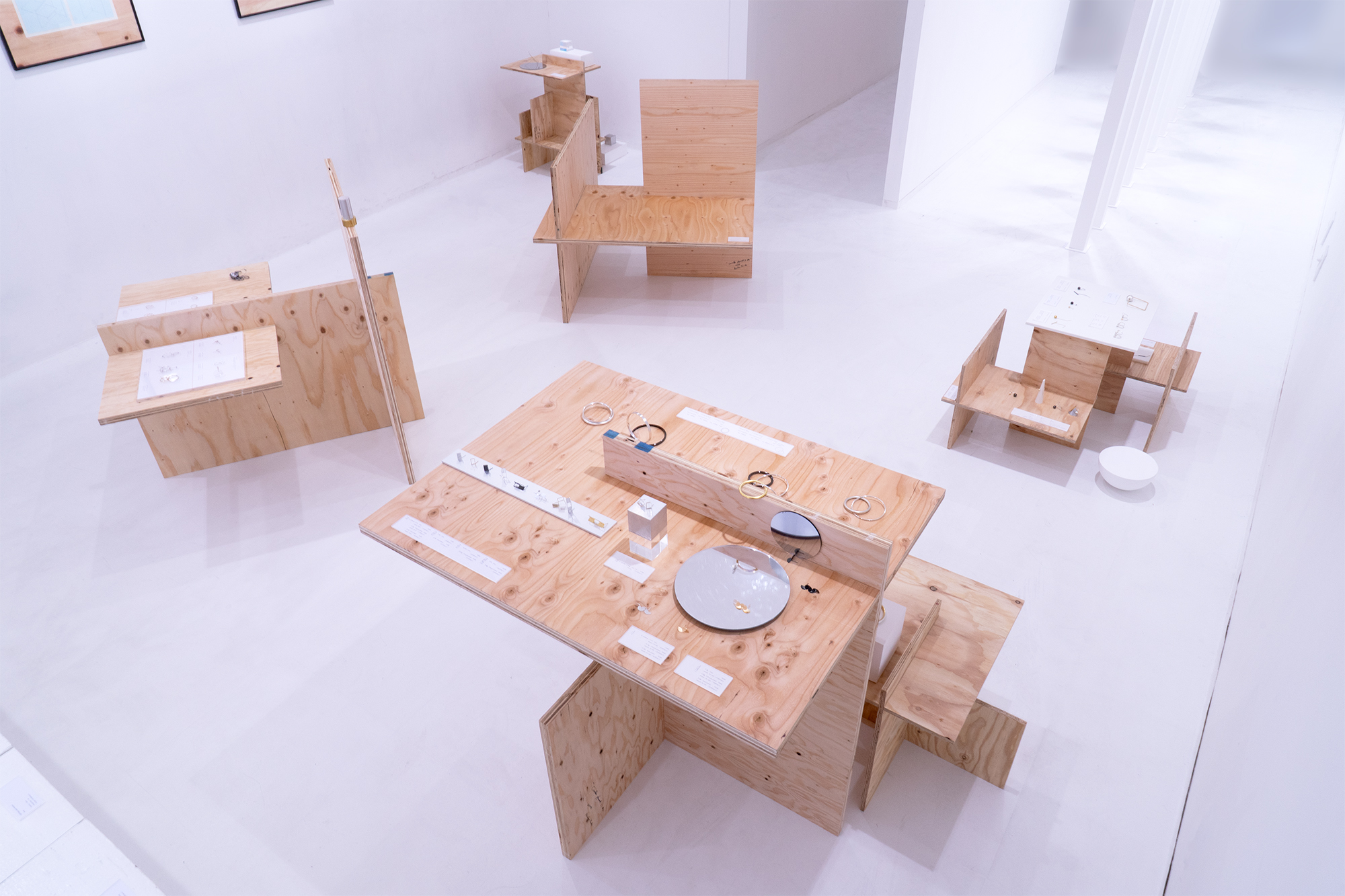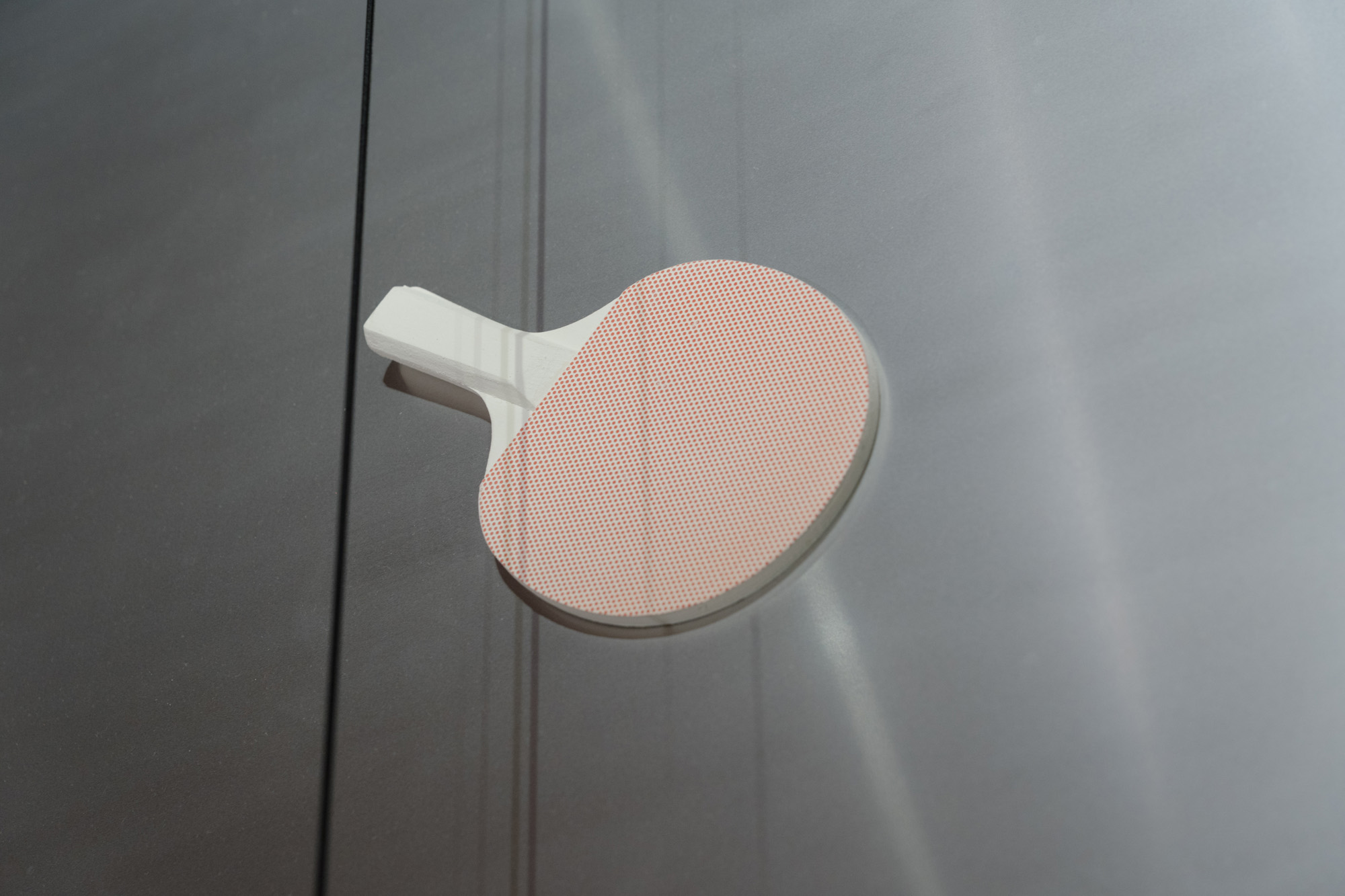 什器、展示台、卓球台、壁面の突起物(ドッコ)は Monoya によるデザイン・制作