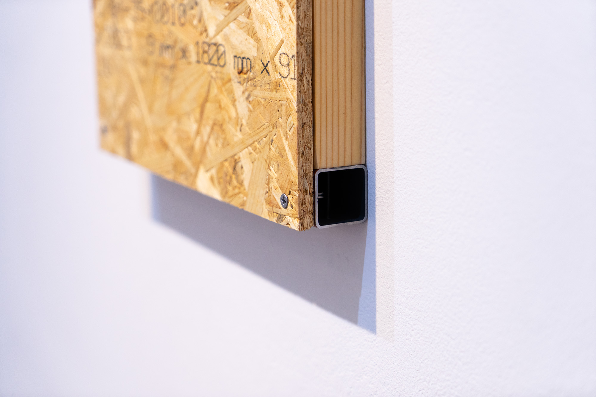 壁面の突起物は=2024年4月のカレンダーになっており、作品を掛けることでその日を表すというもの。